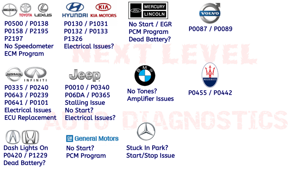 We offer oem module programming for the majority of the manufacturers. In addition, we also perform component level repair of key fobs, engine computers, etc.